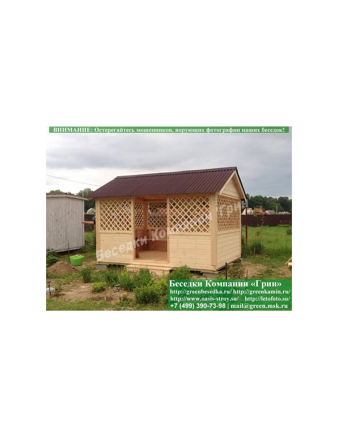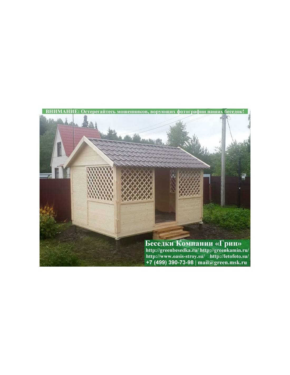 В стандартной поставке в виде кровли на крышу хозблоков, бытовок, беседок 3х4 метров кладется ондулин (мягкий шифер). Вы можете дополнительно заменить его на более надежную металлочерепицу. Цена 8000 руб.