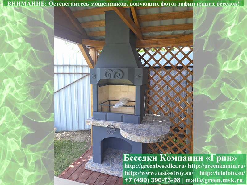 Угловой мангал-барбекю № 19 сделана из армированного огнеупорного бетона с добавлением керамзита;