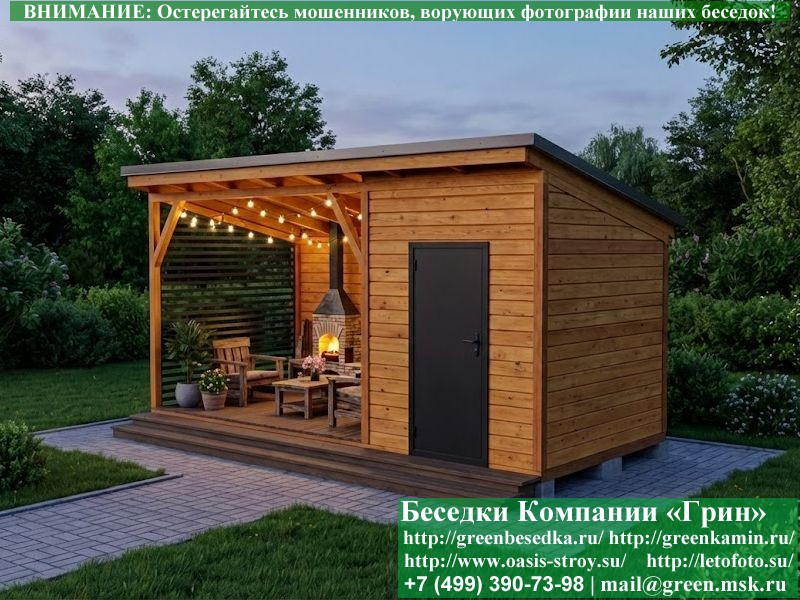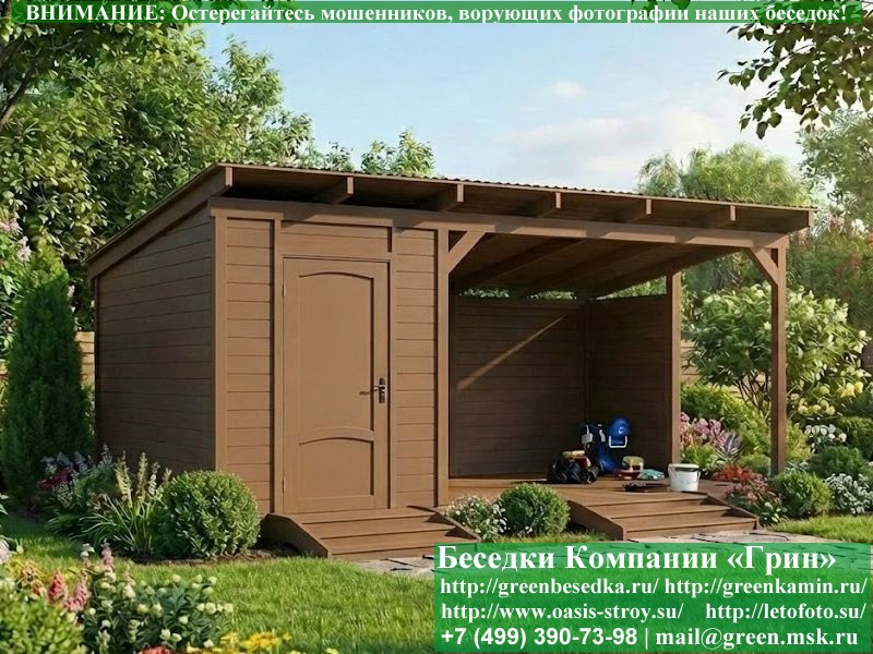 Беседка в стиле 'Лофт' 3х5 метров. Хозблок 2х3 метра. Открытая часть 3х3 метра. Хозблок справа или слева. Кровля — Профлист: