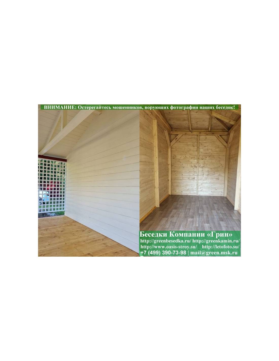 Стандартно беседка с хозблоком идет с проемами под крышей, между беседкой и хозблоком и хозблоком и улицей. Стоимость работ зависит от размеров беседки. Данная цена указана за работу беседки размерами 3х5 метров.