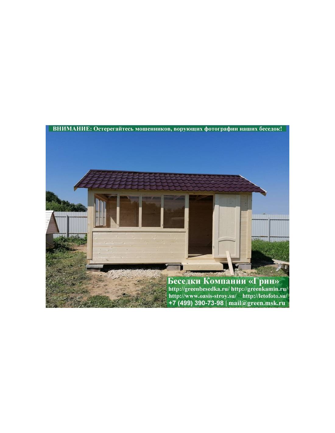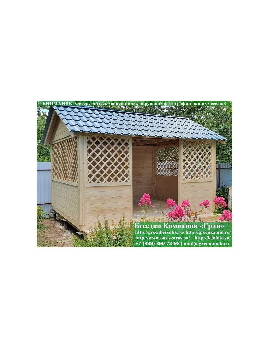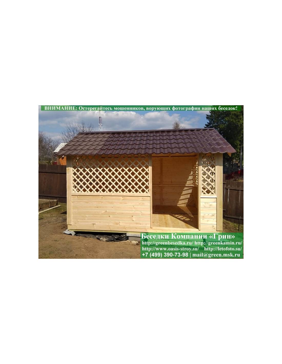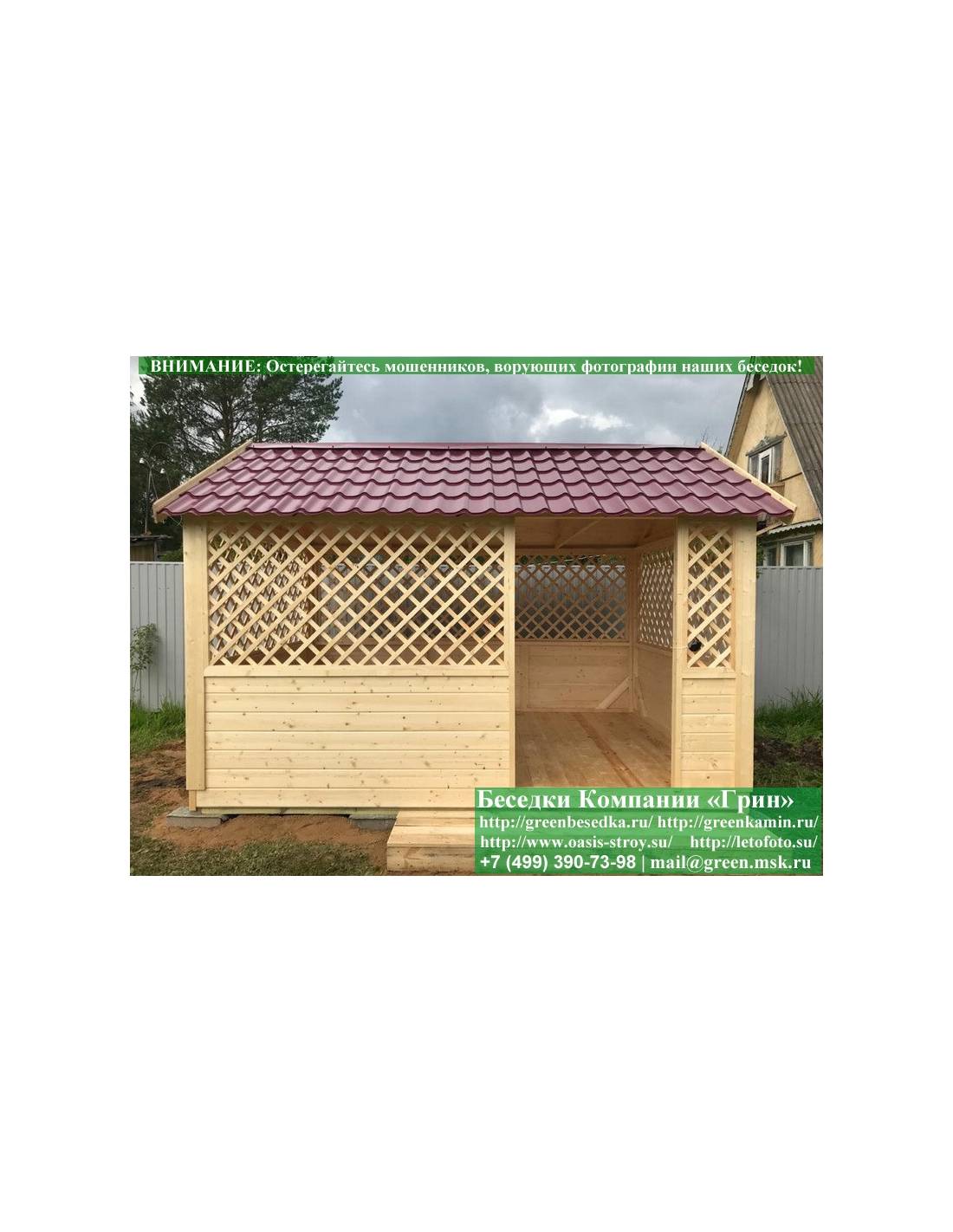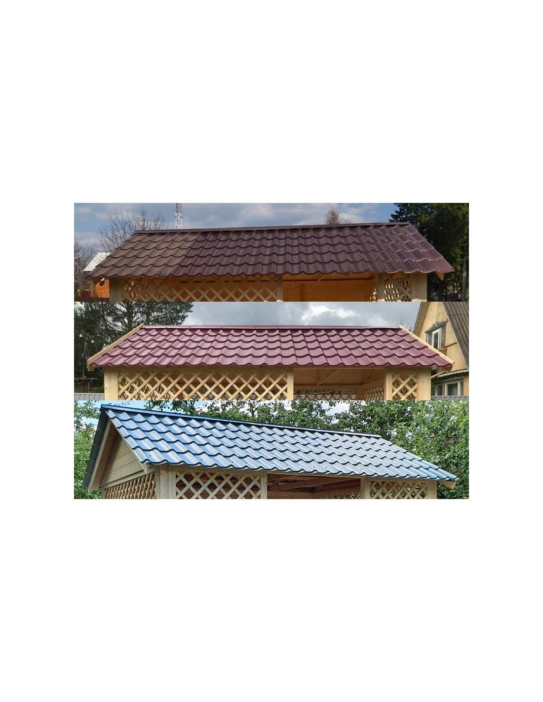 В стандартной поставке в виде кровли на крышу хозблоков, бытовок, беседок 4х4 метра кладется ондулин (мягкий шифер). Вы можете дополнительно заменить его на более надежную металлочерепицу. Цена 19000 руб.