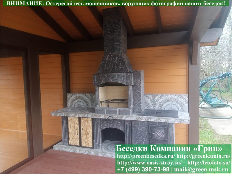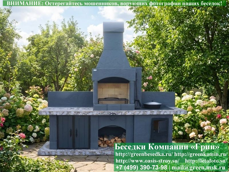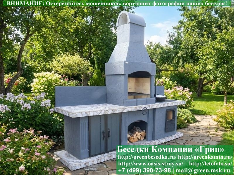 Мы предлагаем купить печь-барбекю для беседки, летней кухни или улицы в очень интересном оформлении. Отделка предполагает использование гранита, мрамора, байрамикса. Это не только красивое, но и функциональное решение, потому что натуральный камень хорошо моется, он устойчив к высокой температуре и холоду, механическому воздействию.