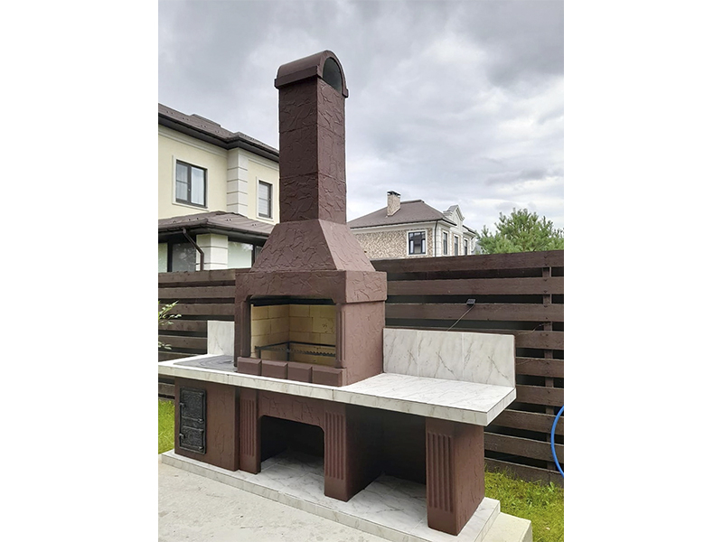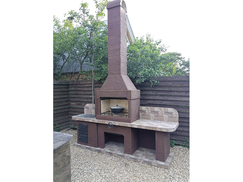 - Комплекс-барбекю с мойкой и плитой № 21 сделана из армированного огнеупорного бетона с добавлением керамзита;