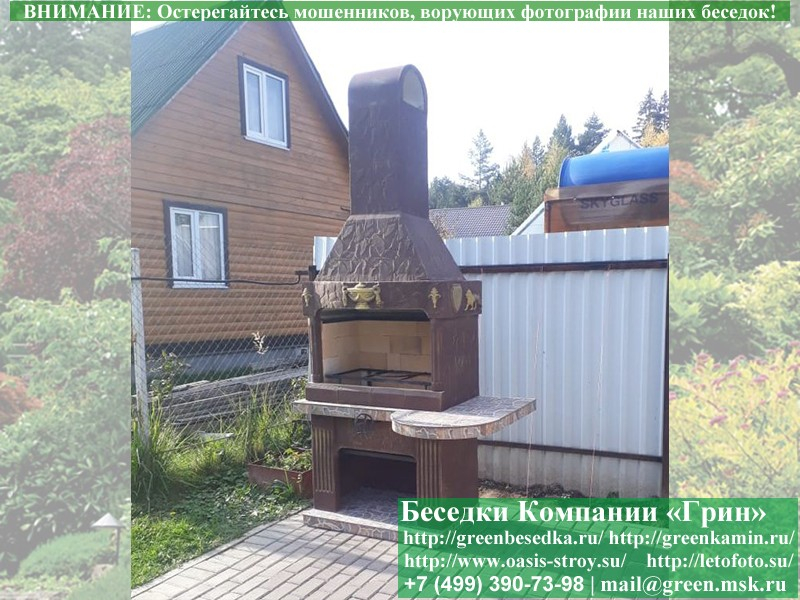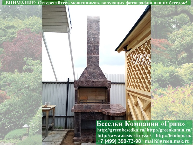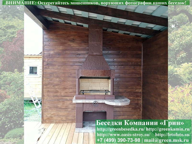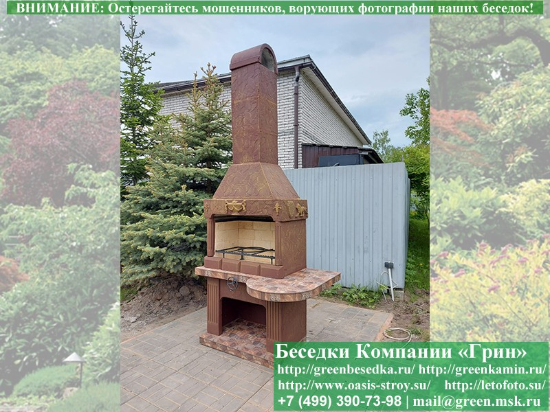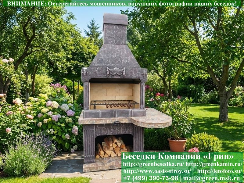 Готовая печь-барбекю для беседки в классическом дизайне.