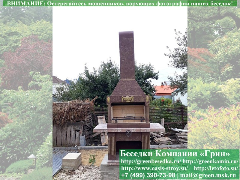 Выбирая безопасную печь-барбекю в беседку, рассмотрите модель № 8. Преимущество этой модели в широкой топке, просторной столешнице с практичной рабочей поверхностью (керамическая плитка), а также эффектном дизайне. Последний отсылает нас к греческим, античным мотивам, а потому хорошо впишется в пространство, где сделана ставка на классику.