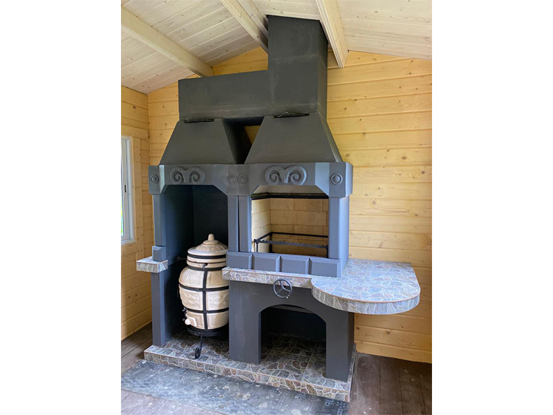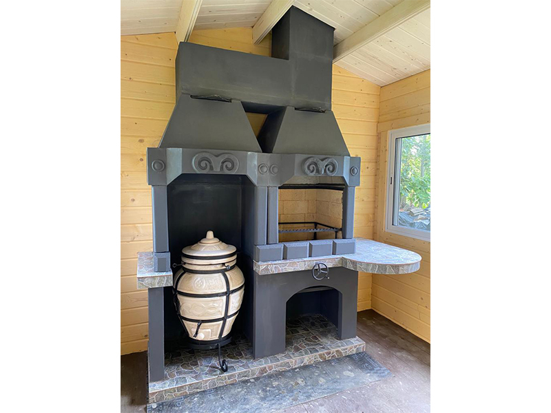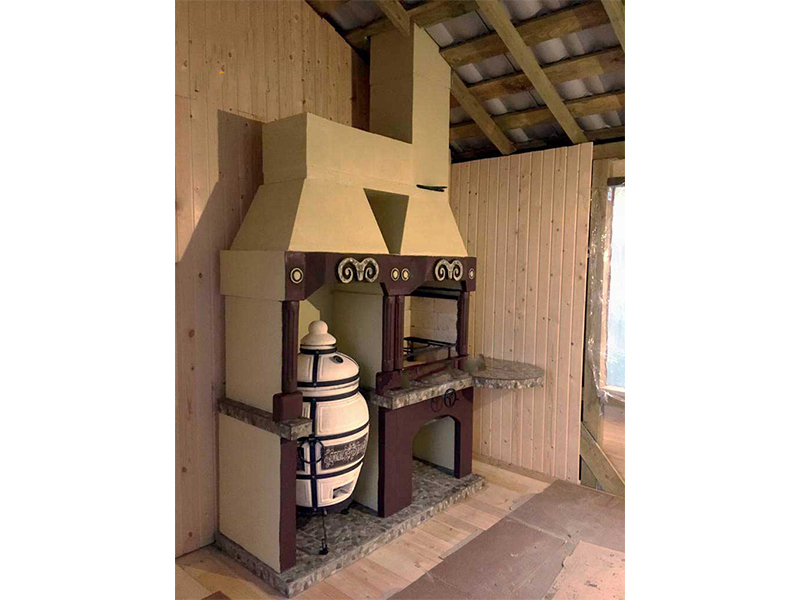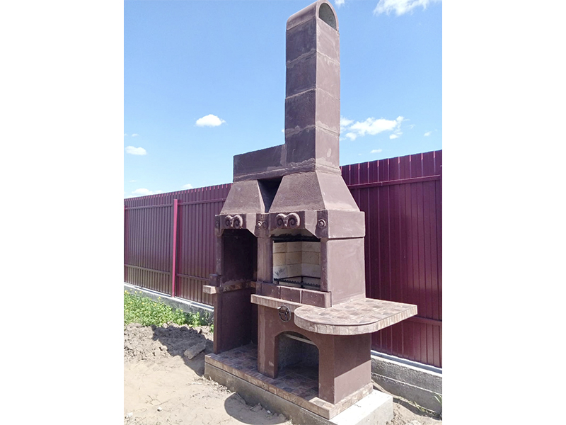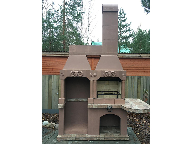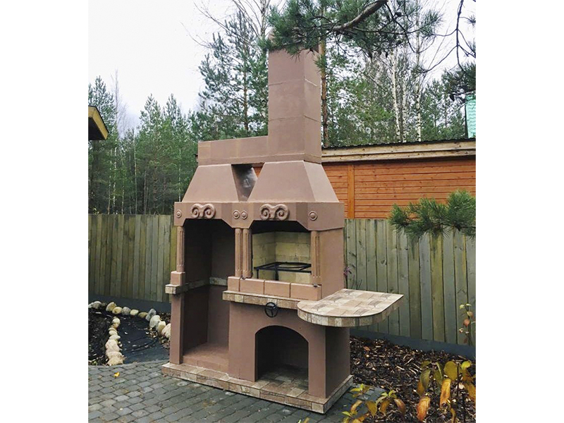 Печь этой модели имеет простой, лаконичный дизайн. Мы выбрали нейтральные цвета: коричневый, серый нескольких оттенков. А это означает, что подолгу искать место для конструкции не придется. Она впишется в любую беседку и на любой участок.