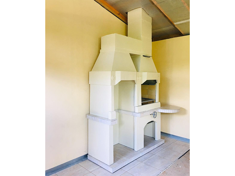 Уже упомянутая небольшая столешница отделана плиткой. Это самый практичный материал для уличного комплекса барбекю. Чтобы его очистить, достаточно воспользоваться любым моющим средством. Плитка не впитывает влагу, быстро высыхает, не держит запахи — и это очень удобно.