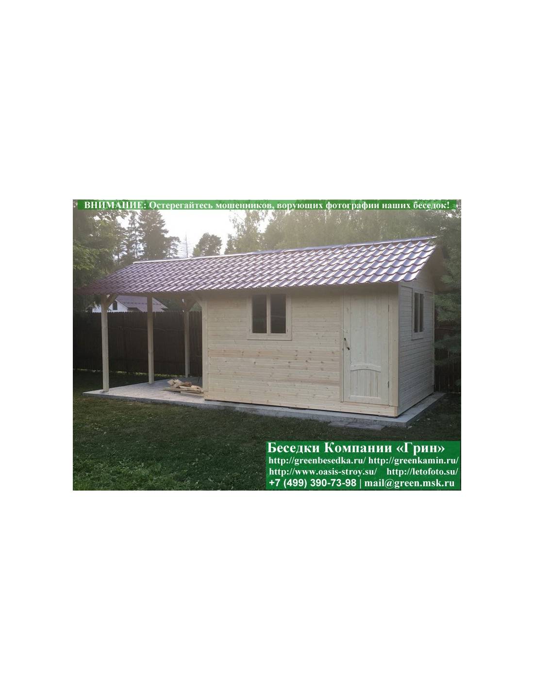 В стандартной поставке в виде кровли на крышу хозблоков, бытовок, беседок 3х7 метров кладется ондулин (мягкий шифер). Вы можете дополнительно заменить его на более надежную металлочерепицу. Цена 15000 руб.
