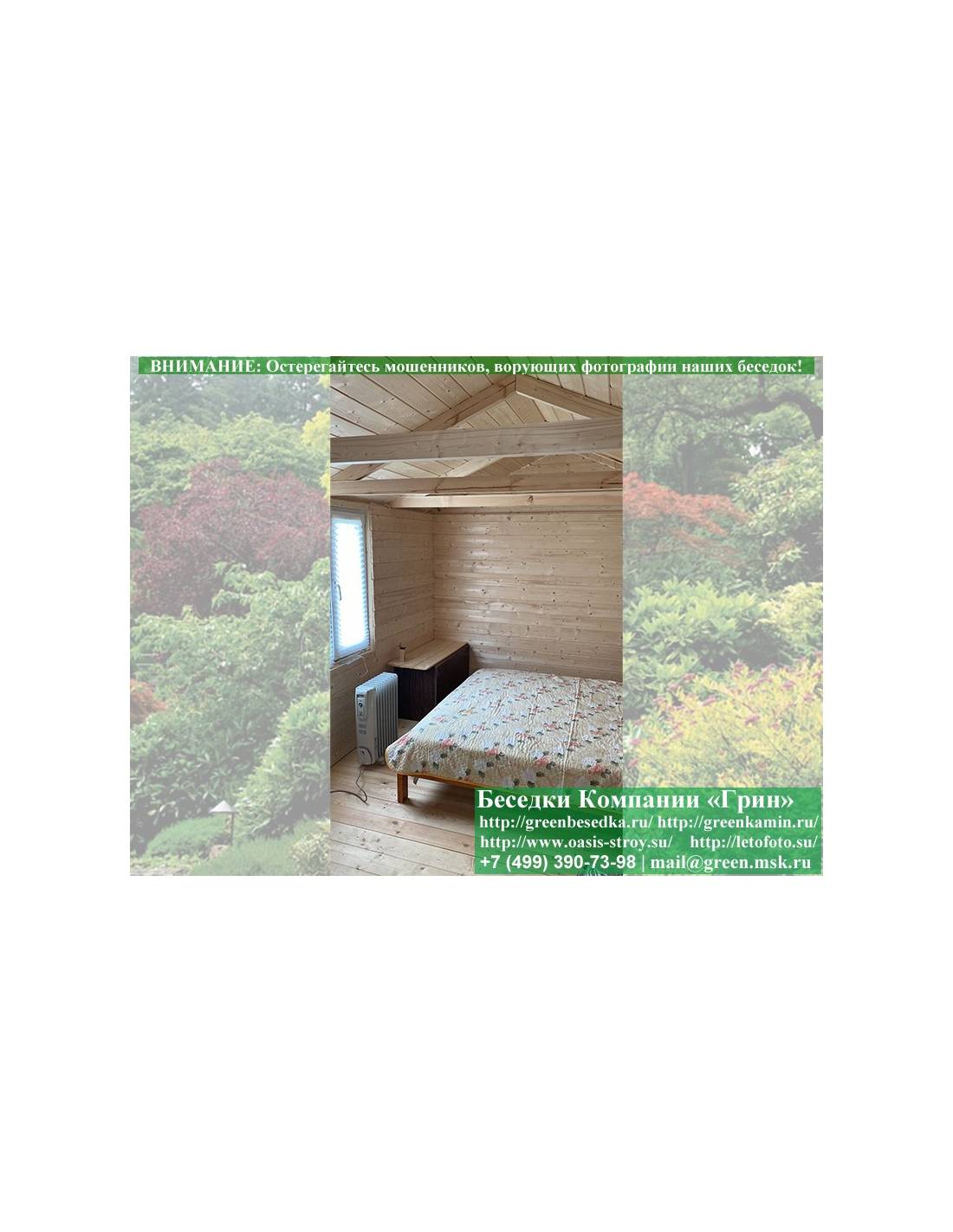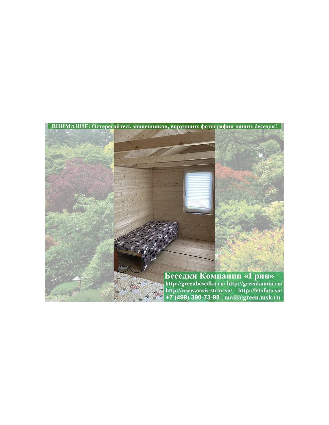 Утепленная деревянная дачная бытовка для жилья, комната на дачу 3х5 метров изготавливается из сосны. При строительстве беседок, бытовок, хозблоков используется сухой материал камерной сушки. В качестве каркаса используется имитация бруса 17х140 мм. Стенки бытовки прокладываются утеплителем 100 мм. Утеплитель закрывается пароизоляцией. Внутри ошивается имитацией бруса. Устанавливаются 1 или 2 двойных деревянных окна (финки). Деревянные окна можно заменить на пластиковые. На крышу бытовки укладывается ондулин: Коричневых, Зеленых, Бордовых, Серых цветов. Возможна замена на металлочерепицу, проф лист или мягкую черепицу. Срок изготовления и монтажа бытовки на участке составляет 7-10 дней. Бытовки, хозблоки поставляются в не крашеном виде. Возможна покраска бытовок или обработка антисептиком.