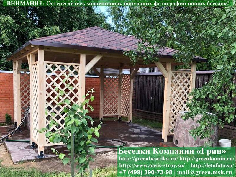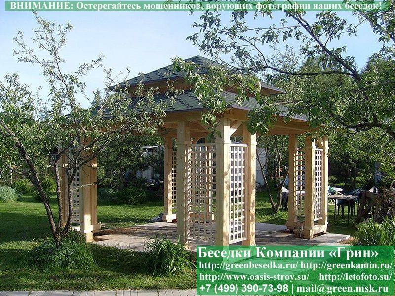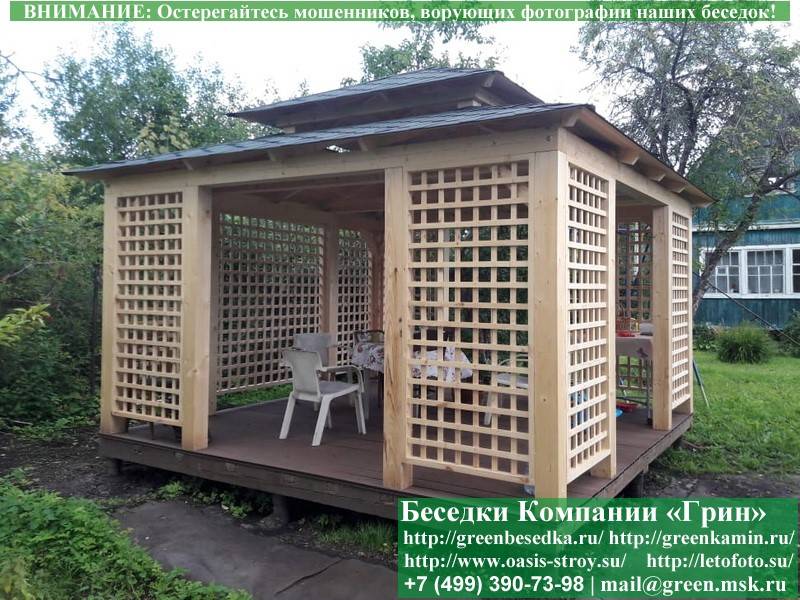 Беседка изготавливается в 2-х вариантах. С полом и без пола;