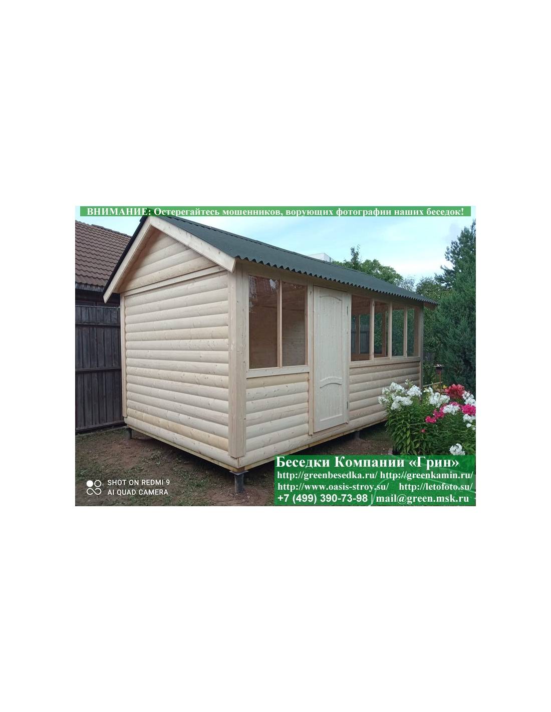 В стандартной поставке в виде кровли на крышу хозблоков, бытовок, беседок 3х5 метров кладется ондулин (мягкий шифер). Вы можете дополнительно заменить его на более надежную металлочерепицу. Цена 9000 руб.